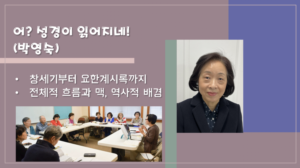 하나님는 성경 66권에 하나님의 공의와 사랑을 나타내는 수 많은 사건과 인물을 기록하셨습니다. 이들은 인간과 시간과 공간을 포함해서 역사를 만듭니다. 두 학기동안 성경에 나오는 중요한 24 인물의 특성을 공부하면서 영적으로 자신의 정체성을 새롭게 찾고 해석하고 적용하여 믿음을 더 성숙시켜 정신과 신체를 행복하게 합니다.