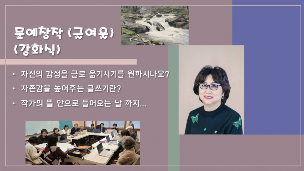창작의 문 안으로 들어오신 여러분을 환영합니다. 글은 마음의 창이요. 과거를 돌아볼 수 있는 개인의 작은 역사라고 말합니다. 적자생존 인생은 100년이지만 글은 1,000년을 가기 때문에 기록은 유통기한이 길다고 합니다. 문학을 좋아해서 꿈꿨던 시간들이 젊은 시절엔 누구에게나 있었습니다. 하지만 물리적 환경과 심리적 환경 속에서 쉽게 선택할 수가 없었습니다. 아쉬움을 뒤로 한 채 잊고 지냈던 분들에게 예습하며 공부할 수 있는 공간이 글여울 이라고 생각합니다…