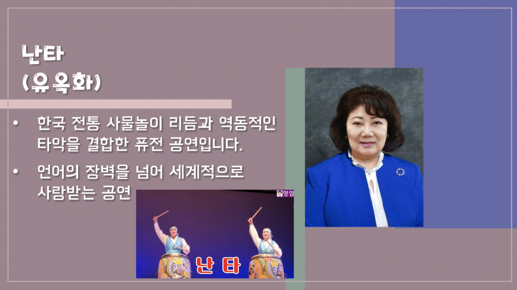 난타 공연에서 **북(드럼)**은 한국 전통 사물놀이 리듬을 기반으로 합니다. 학새생은 다음의 준비물이 필요합니다.